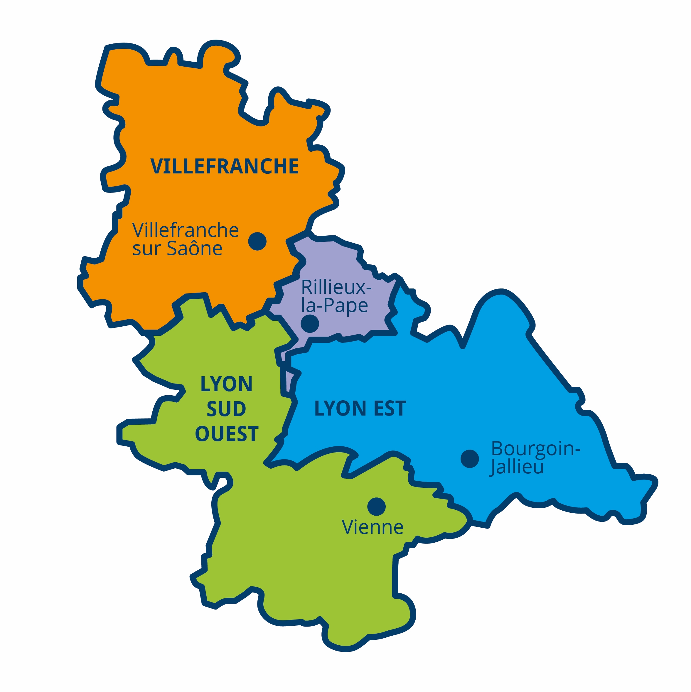 Soins et Santé Mobilité intervient sur le même territoire que l’Hospitalisation À Domicile de Soins et Santé. Ainsi nous pouvons prendre en charge des personnes au départ et à destination de toutes les communes du Rhône et dans certaines communes limitrophes de l’Ain et du Nord Isère.